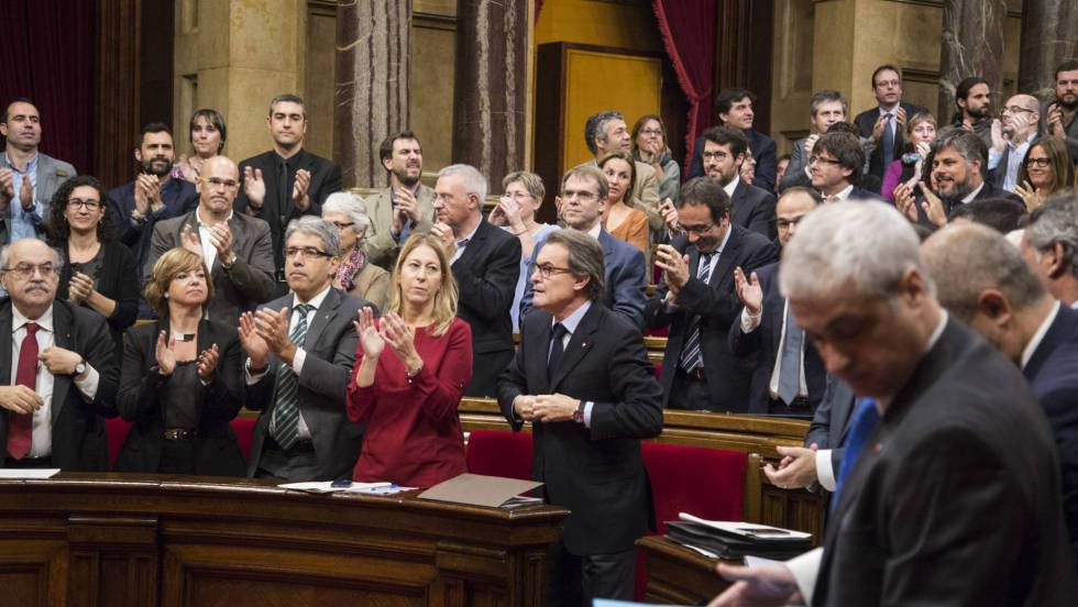 A partir de ese 27-S de 2015, todo se acelera. El 9 de noviembre, el Parlamento catalán aprueba la resolución que pretende ser definitiva: un texto que declara el “inicio del proceso de creación del Estado catalán independiente”, insta a desobedecer al resto de instituciones españolas (empezando por el Tribunal Constitucional) y conmina a la Generalitat a cumplir solo las leyes emanadas de la Cámara regional. El Gobierno de Rajoy también cambia el paso: aprueba en solitario una reforma legal muy controvertida que da al Constitucional poder para inhabilitar a cargos públicos. Mientras, el tribunal advierte al Parlament y a su presidenta, Carme Forcadell, de que cualquier iniciativa vinculada a la resolución de noviembre es ilegal, y avisa de consecuencias penales.